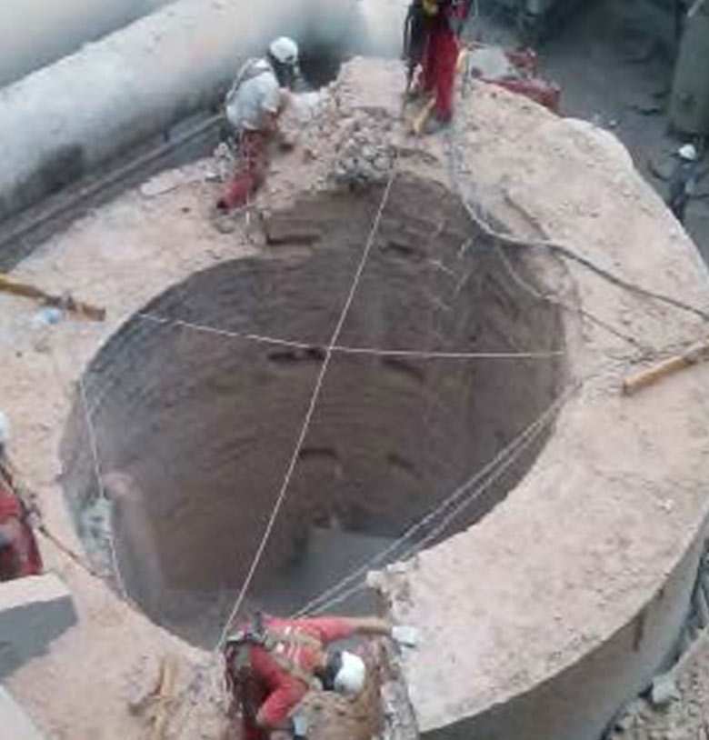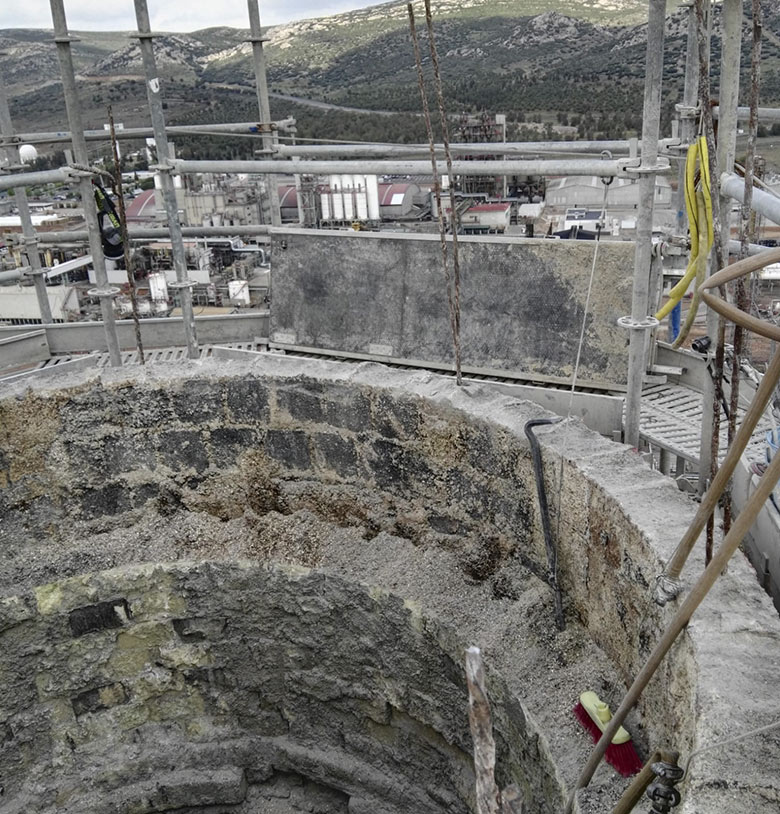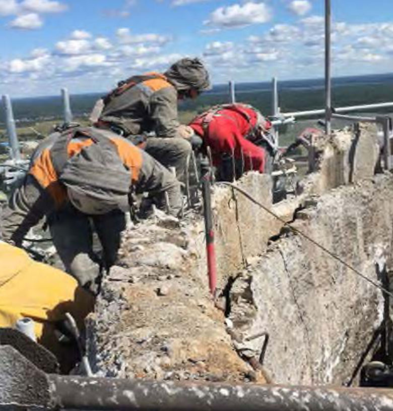chimneys in the Repsol oil refinery in Puertollano using diamond saws.