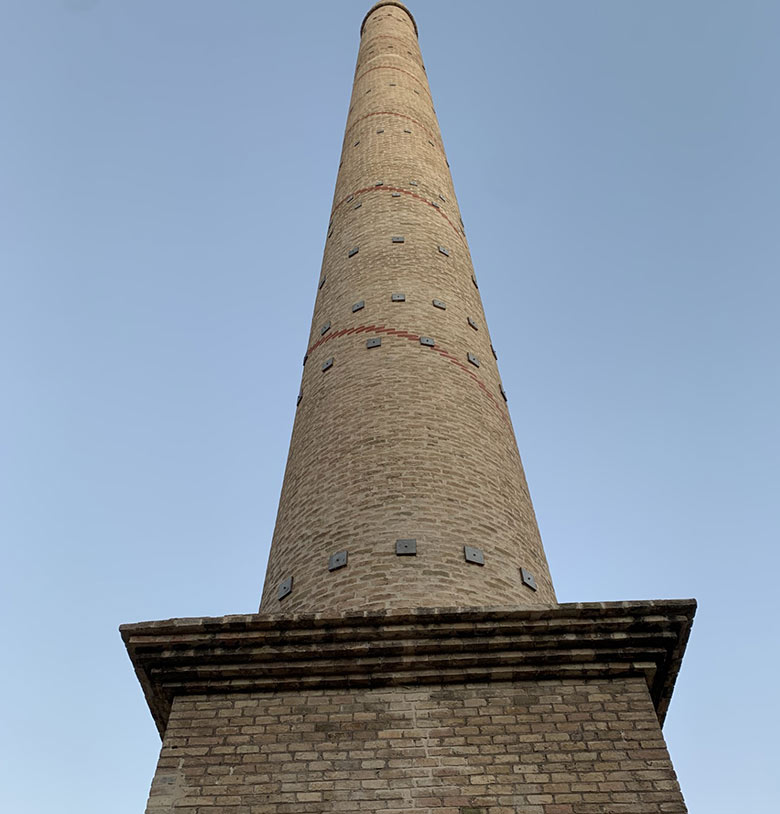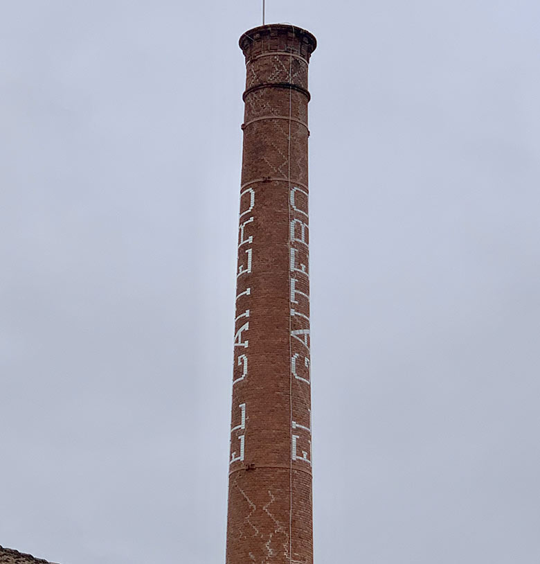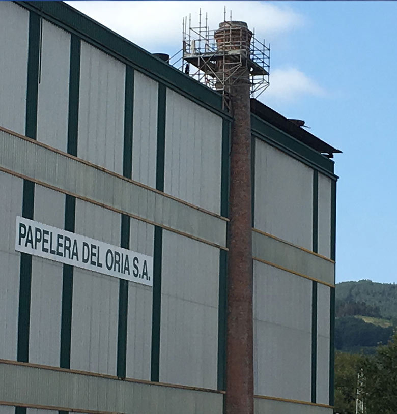 of the brick chimney of the Oria paper mill.