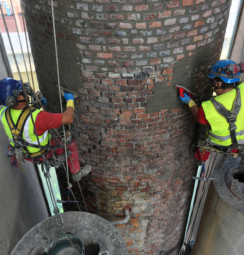 Restoration and reinforcement of the old chimney